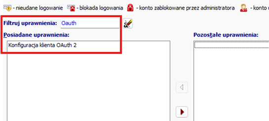 - Użytkownik konfigurujący punkty autoryzacji w programie musi posiadać uprawnienie Konfiguracja klienta OAuth2.