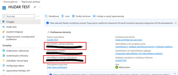 - identyfikator katalogu (dzierżawy) – tylko wtedy, gdy rejestracja aplikacji nie dotyczy całej organizacji,