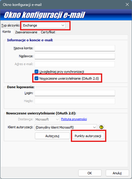 - Skonfigurowany klient autoryzacji będzie od teraz dostępny dla wszystkich użytkowników bazy danych w oknie konfiguracji konta e-mail: