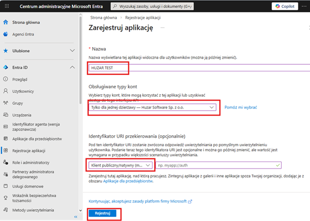 2. Rejestrowanie aplikacji w Microsoft Entra ID